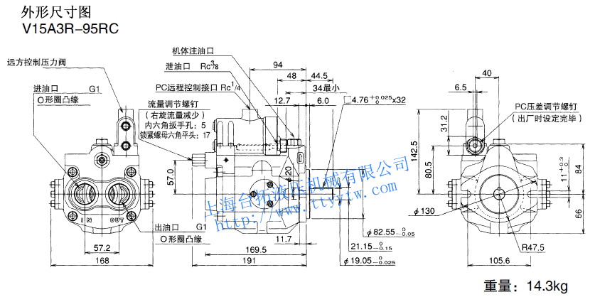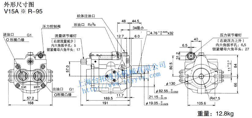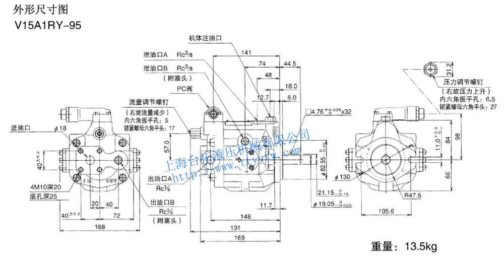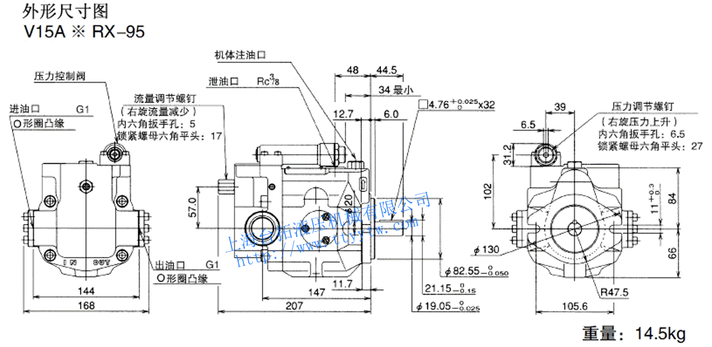 變量柱塞泵V15A*R-95尺寸圖下載 變量柱塞泵V15A3RX-95RC尺寸圖下載