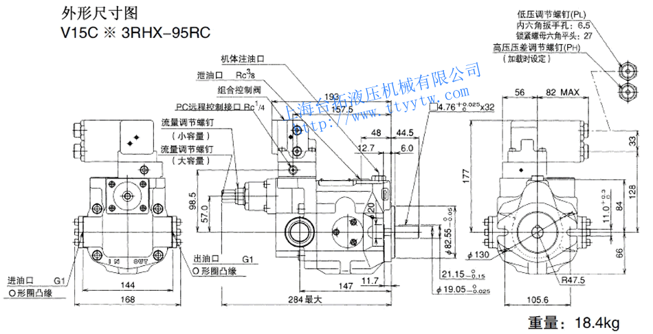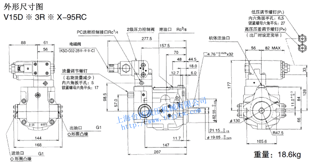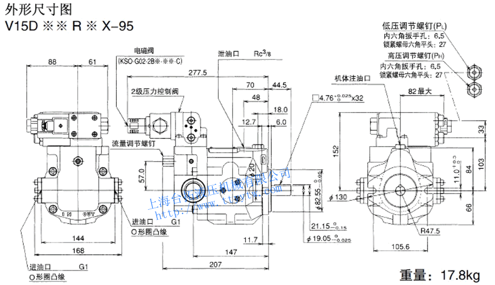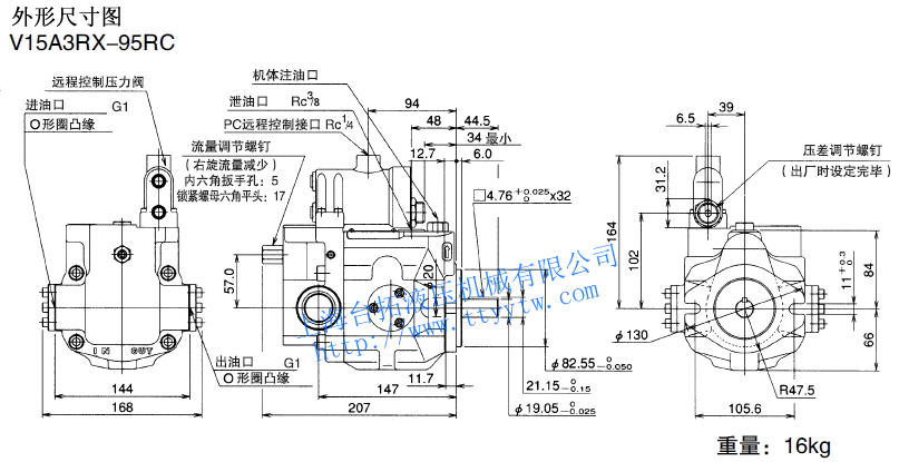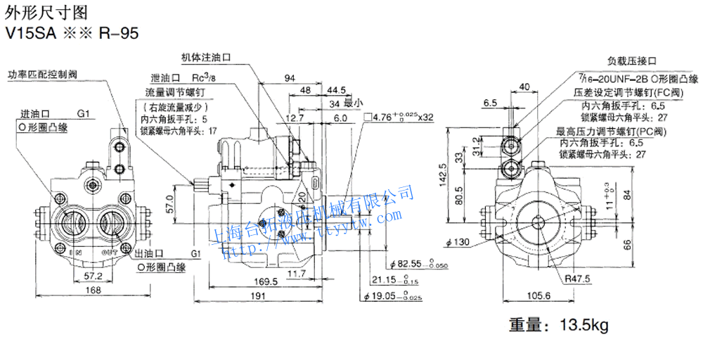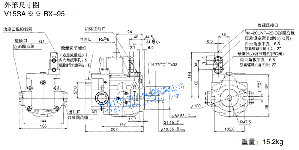 變量柱塞泵V15A3R-95RC尺寸圖下載 變量柱塞泵V15C**RHX-95尺寸圖下載