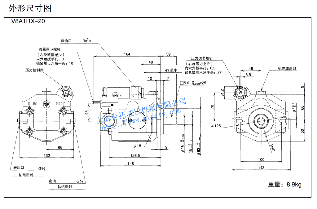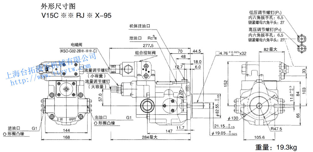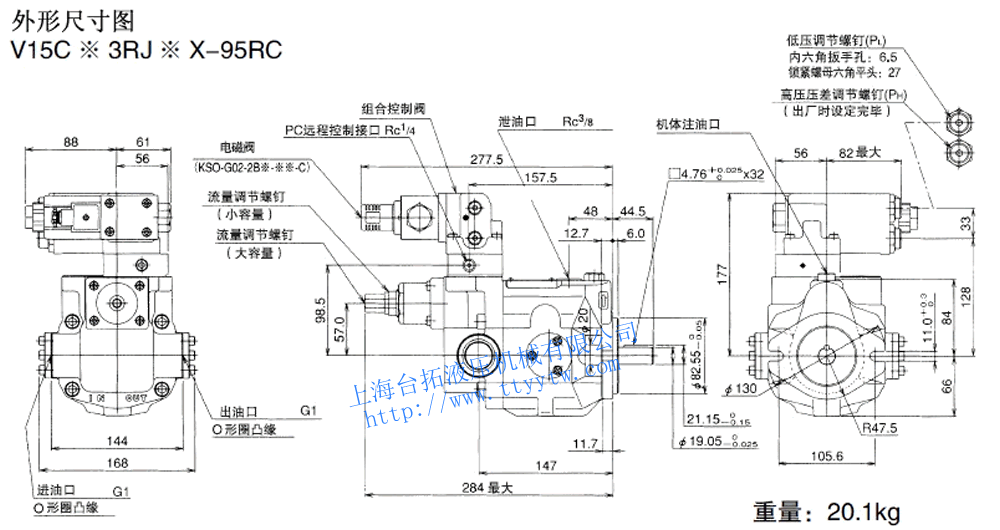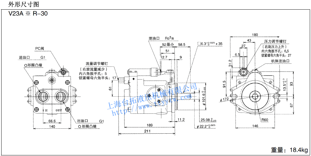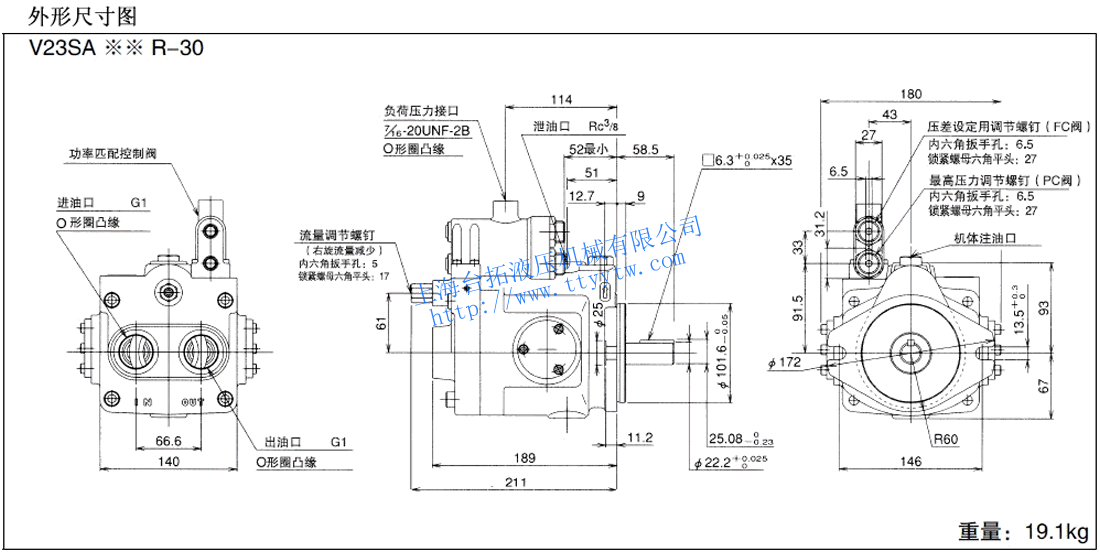 側面油管口20:泵型號V8,V50