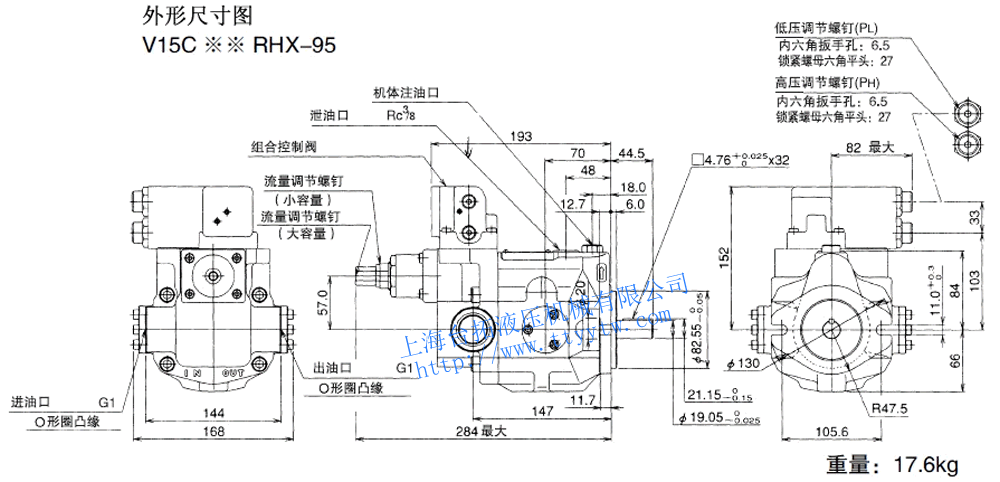 變量柱塞泵V15C*3RHX-95RC尺寸圖下載 變量柱塞泵V15C**RJ*X-95尺寸圖下載
