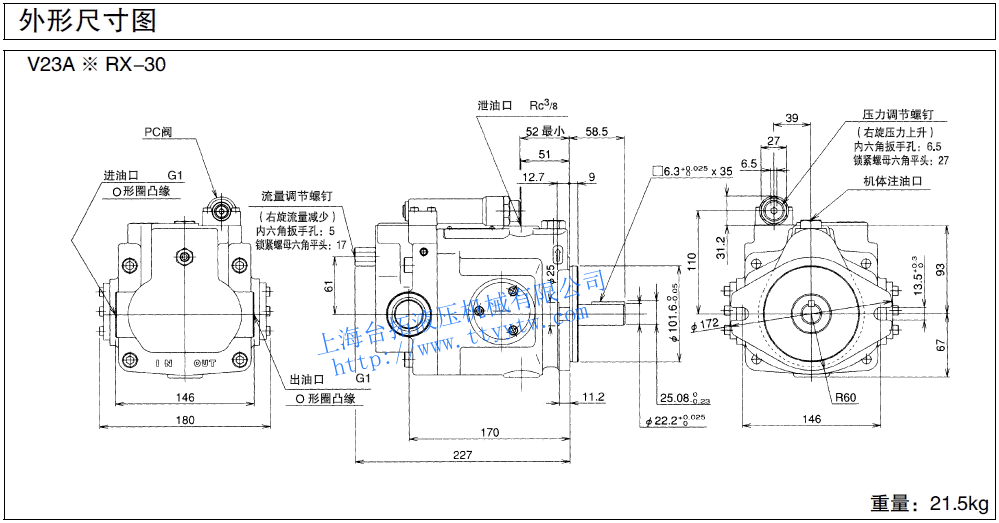 變量柱塞泵V23A4RX-30RC尺寸圖下載 變量柱塞泵V23C**RHX-30尺寸圖下載