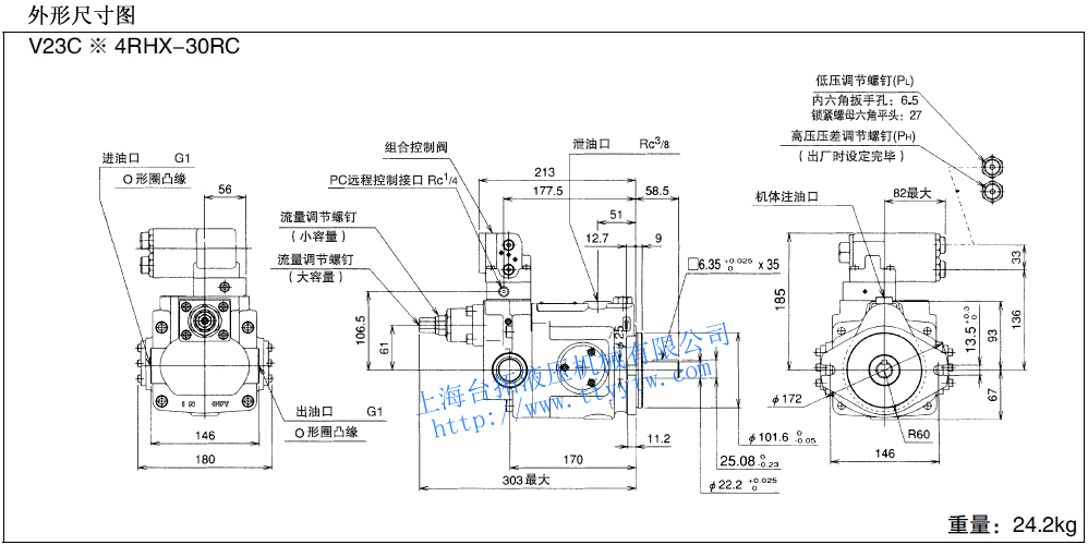 變量柱塞泵V23C*4RHX-30RC尺寸圖下載 變量柱塞泵V23C**RJ*X-35尺寸圖下載