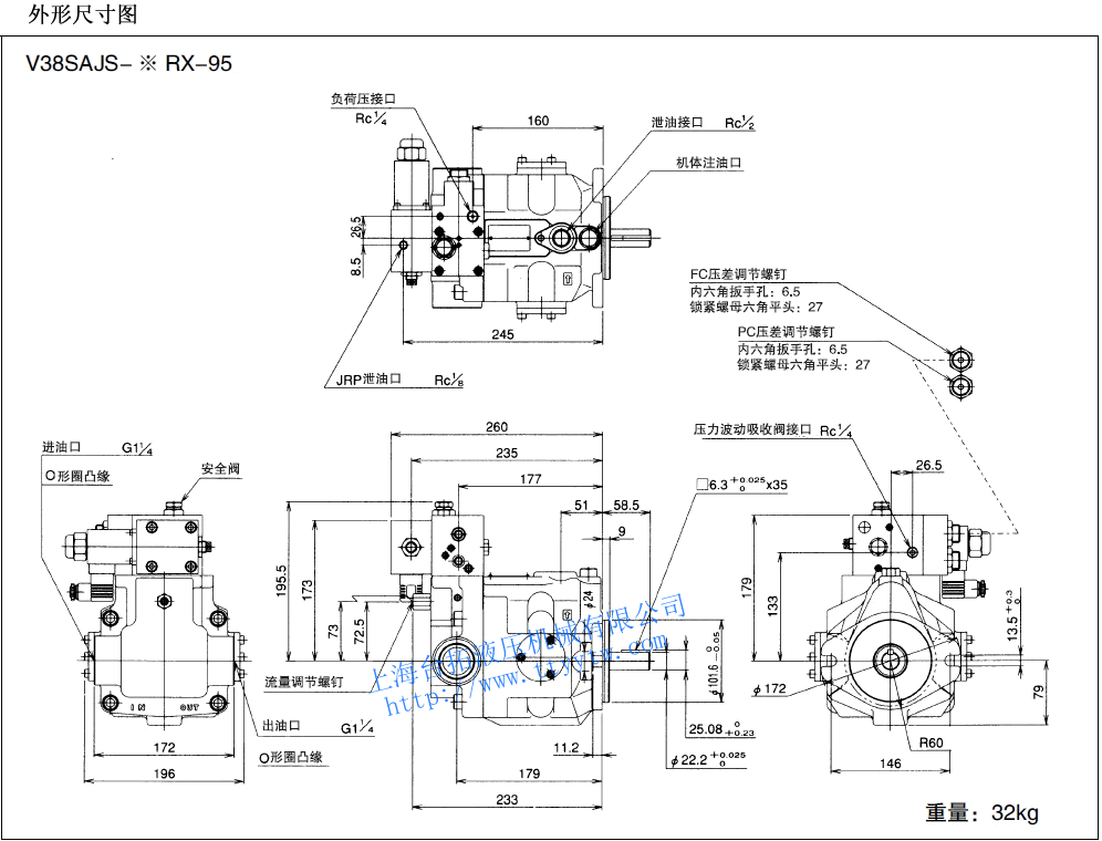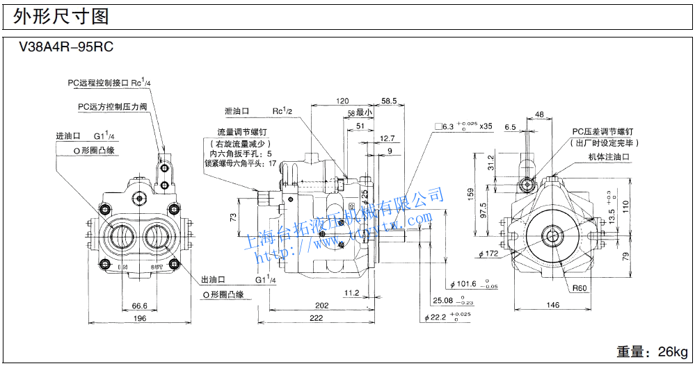 變量柱塞泵V38A4RX-95RC尺寸圖下載 變量柱塞泵V38A4R-95RC尺寸圖下載