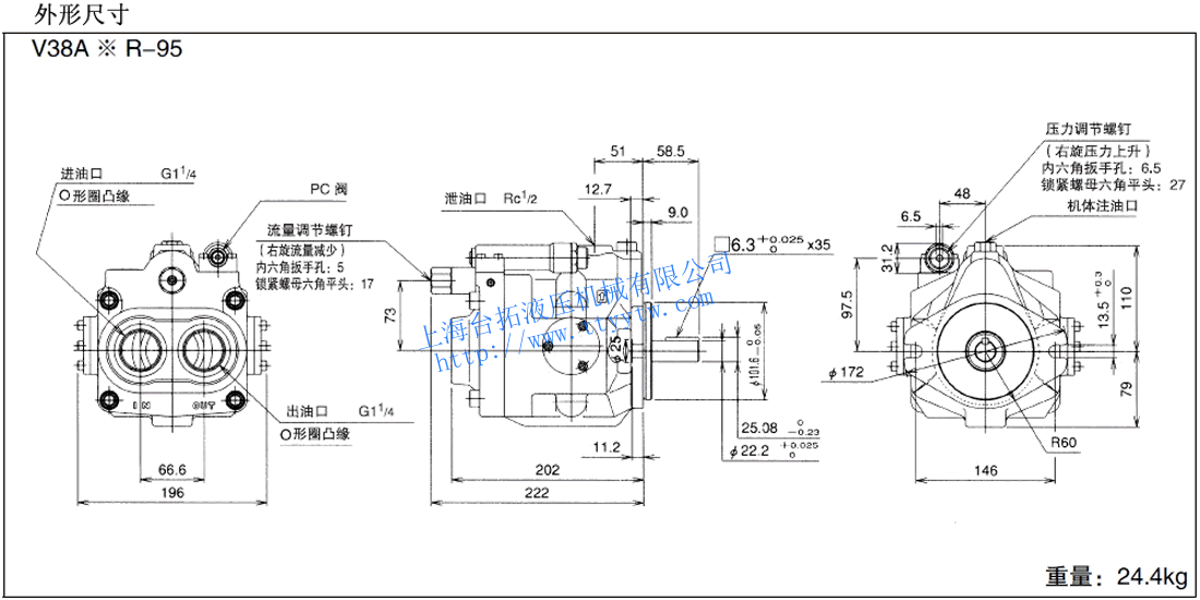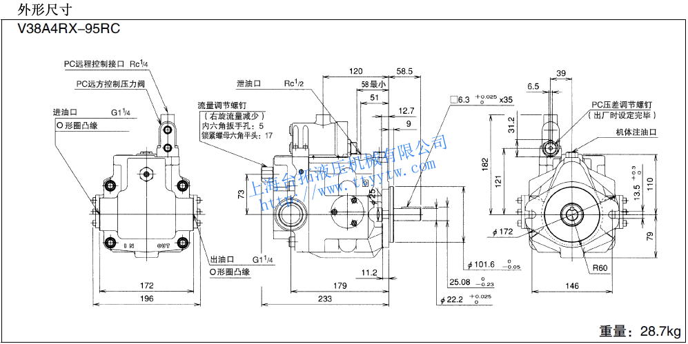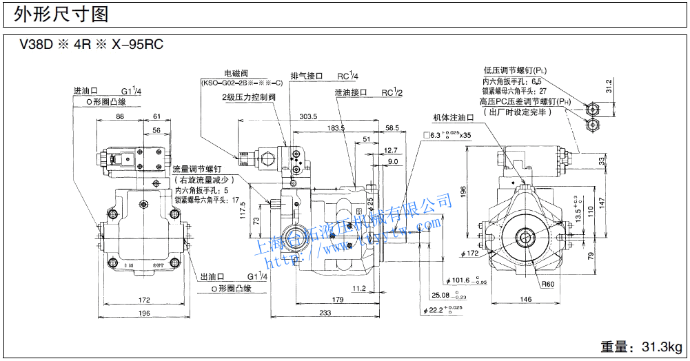 變量柱塞泵V38D**R*X-95尺寸圖下載 變量柱塞泵V38D*4R*X-95RC尺寸圖下載