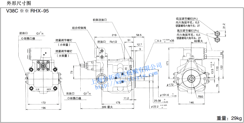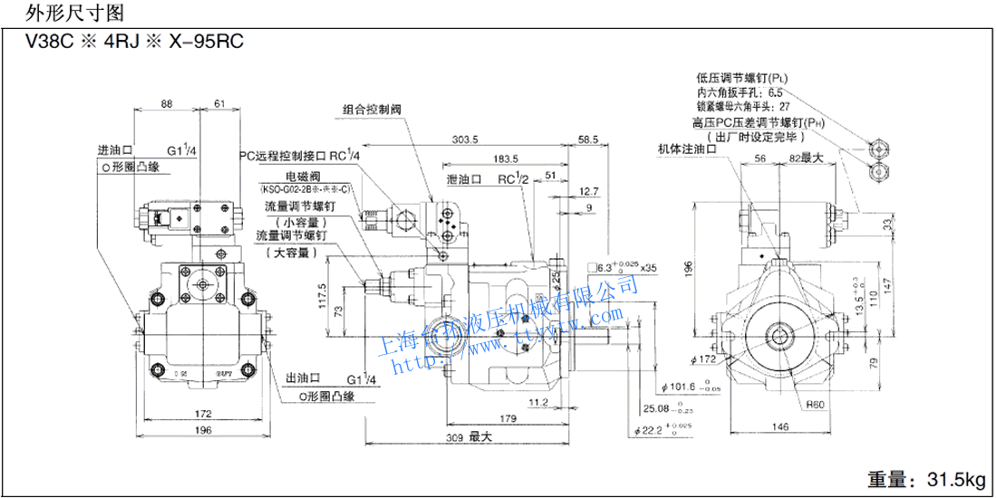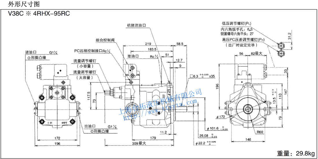 變量柱塞泵V38C**RHX-95尺寸圖下載 變量柱塞泵V38C*4RHX-95RC尺寸圖下載