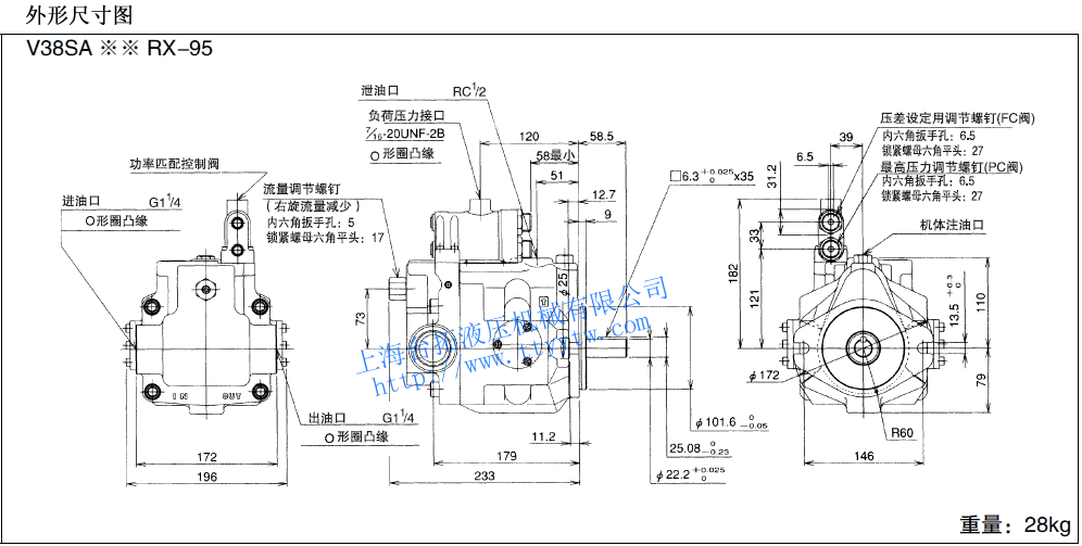 變量柱塞泵V38SA**RX-95尺寸圖下載 變量柱塞泵V38SA**R-95尺寸圖下載