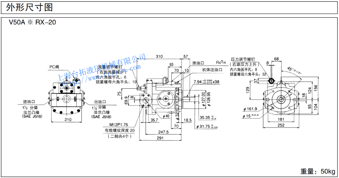 變量柱塞泵V50A3RX-20尺寸圖下載 變量柱塞泵V50SA**RX-20尺寸圖下載