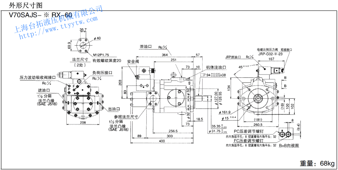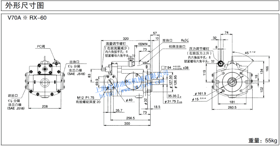 變量柱塞泵V50SAJS-*RX-20尺寸圖下載 變量柱塞泵V70A*RX-60尺寸圖下載