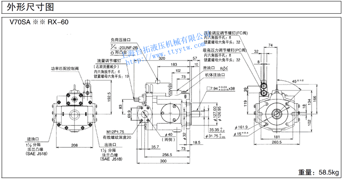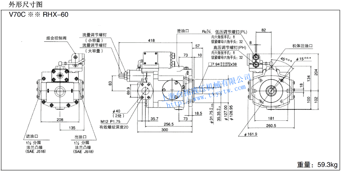 變量柱塞泵V70A3RX-60RC尺寸圖下載 變量柱塞泵V70C**RHX-60尺寸圖下載