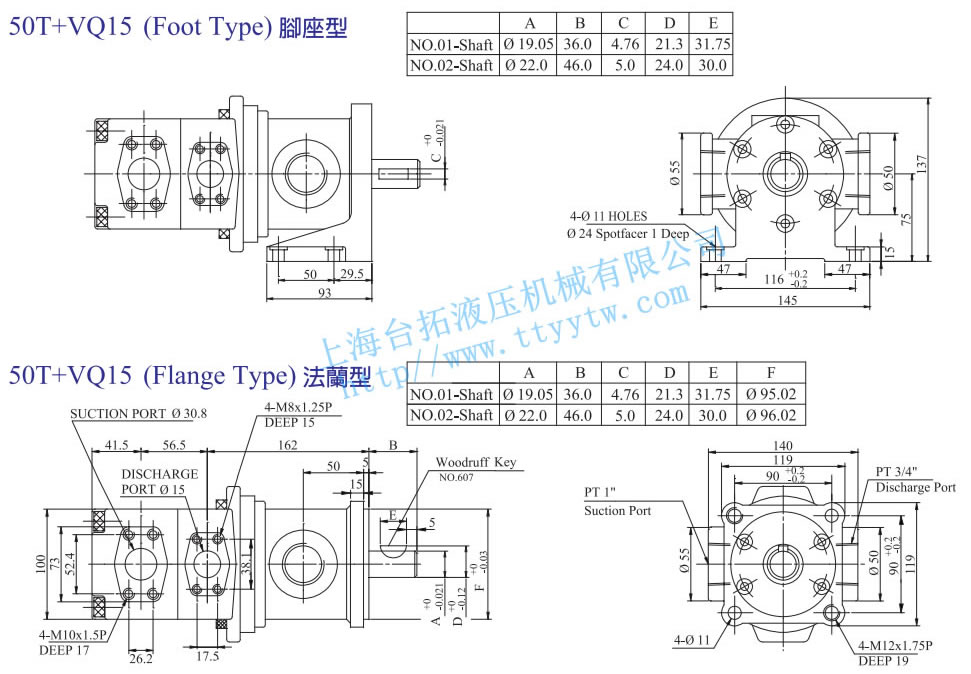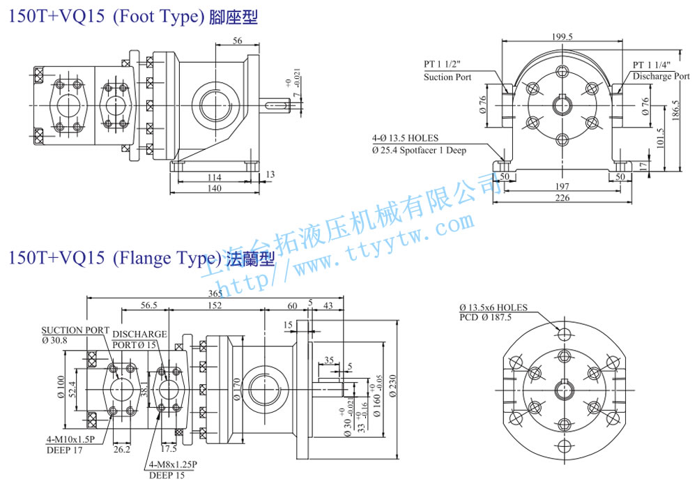 定量高低壓組合泵50T+VQ15腳座型法蘭型尺寸圖下載 定量高低壓組合泵150T+VQ15腳座型法蘭型尺寸圖下載