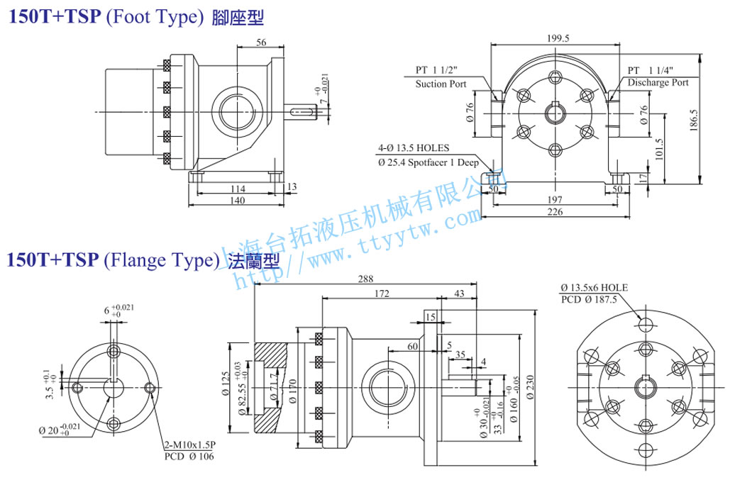 定量高低壓組合泵50T+TSP腳座型法蘭型尺寸圖下載 定量高低壓組合泵150T+TSP腳座型法蘭型尺寸圖下載
