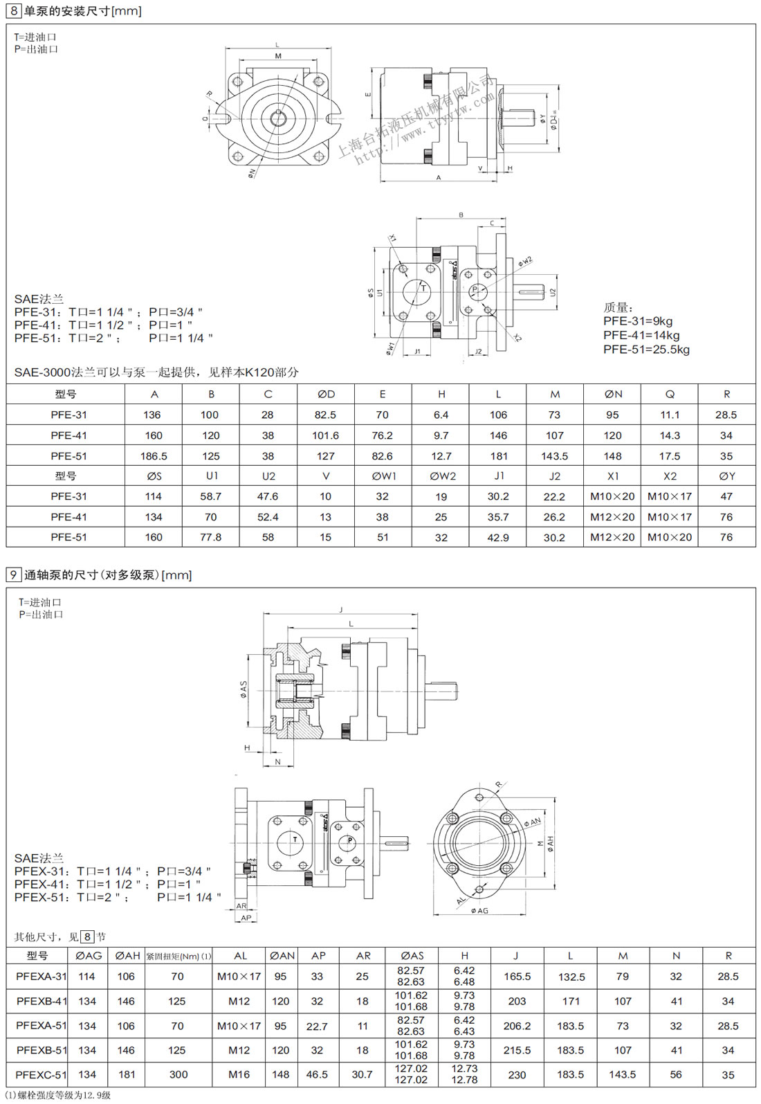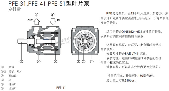 PFE系列葉片泵單泵安裝尺寸及通軸尺寸