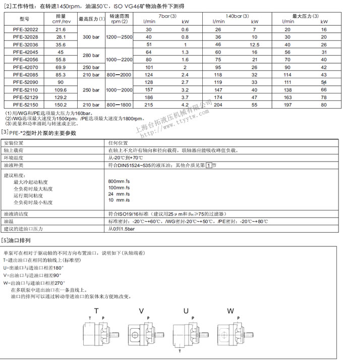 葉片泵PFE32/42/52工作特主要參數油口排列