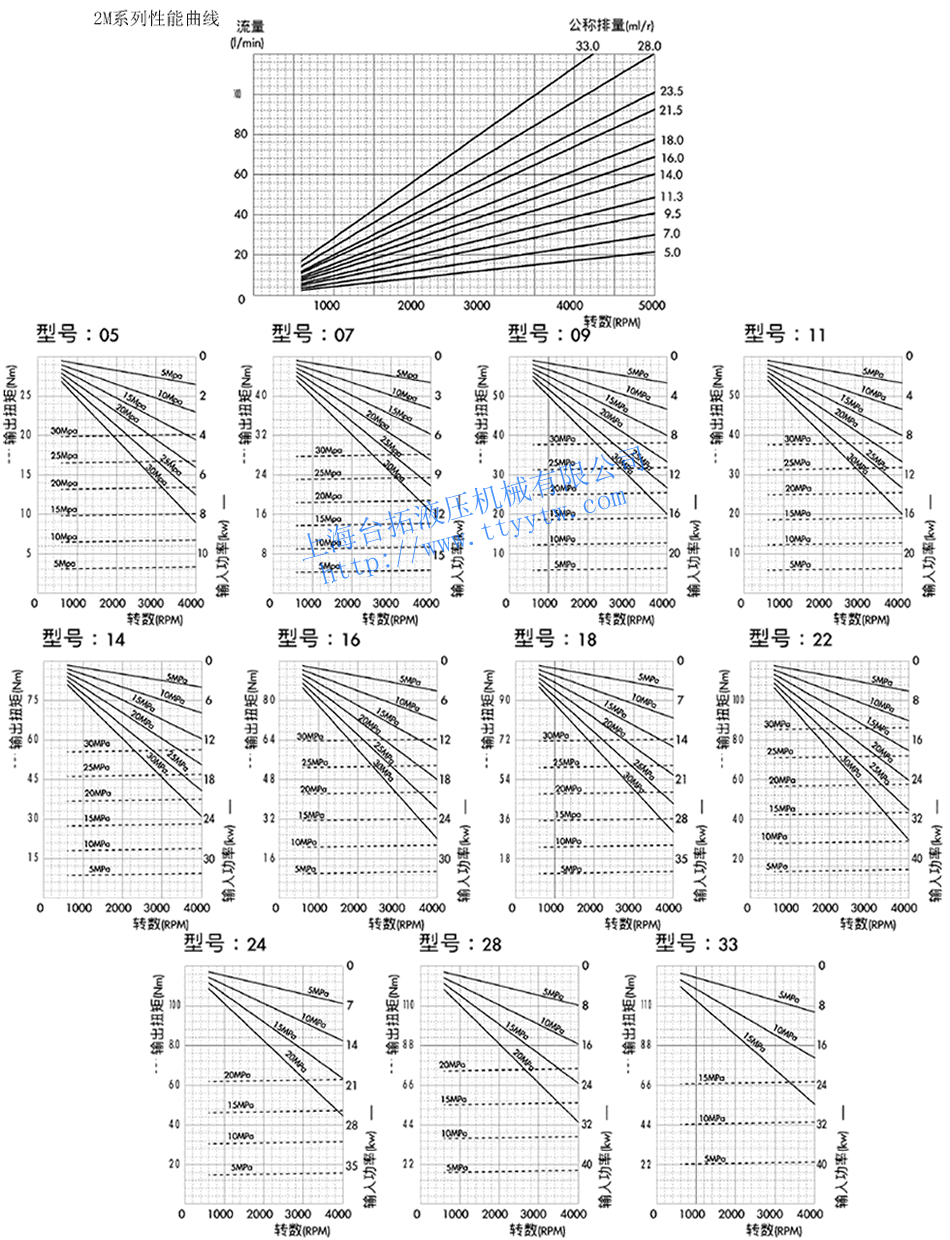 雙向齒輪馬達(dá)2M系列性能曲線