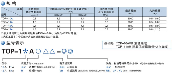 - NOP擺線齒輪泵TOP-1A泵單體型號規格性能說明: