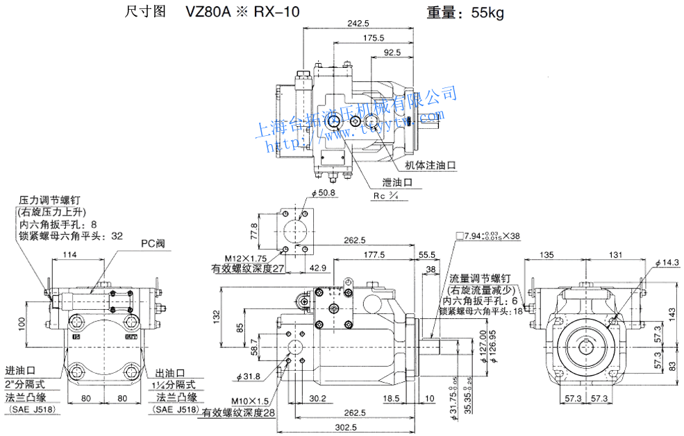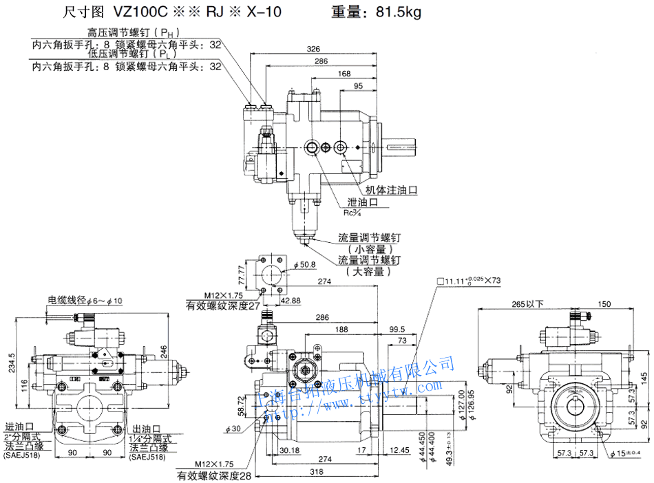 變量柱塞泵VZ80C*RHX-10尺寸圖下載 變量柱塞泵VZ80C**RJ*X-10尺寸圖下載
